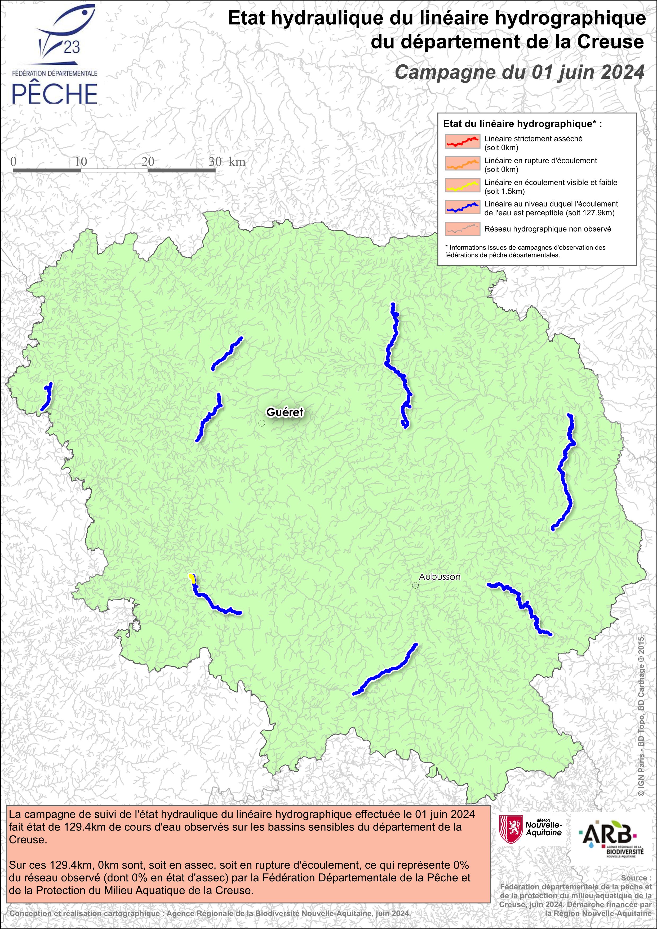 Etat hydraulique du linéaire hydrographique du département de la Creuse - Campagne du 1er juin 2024